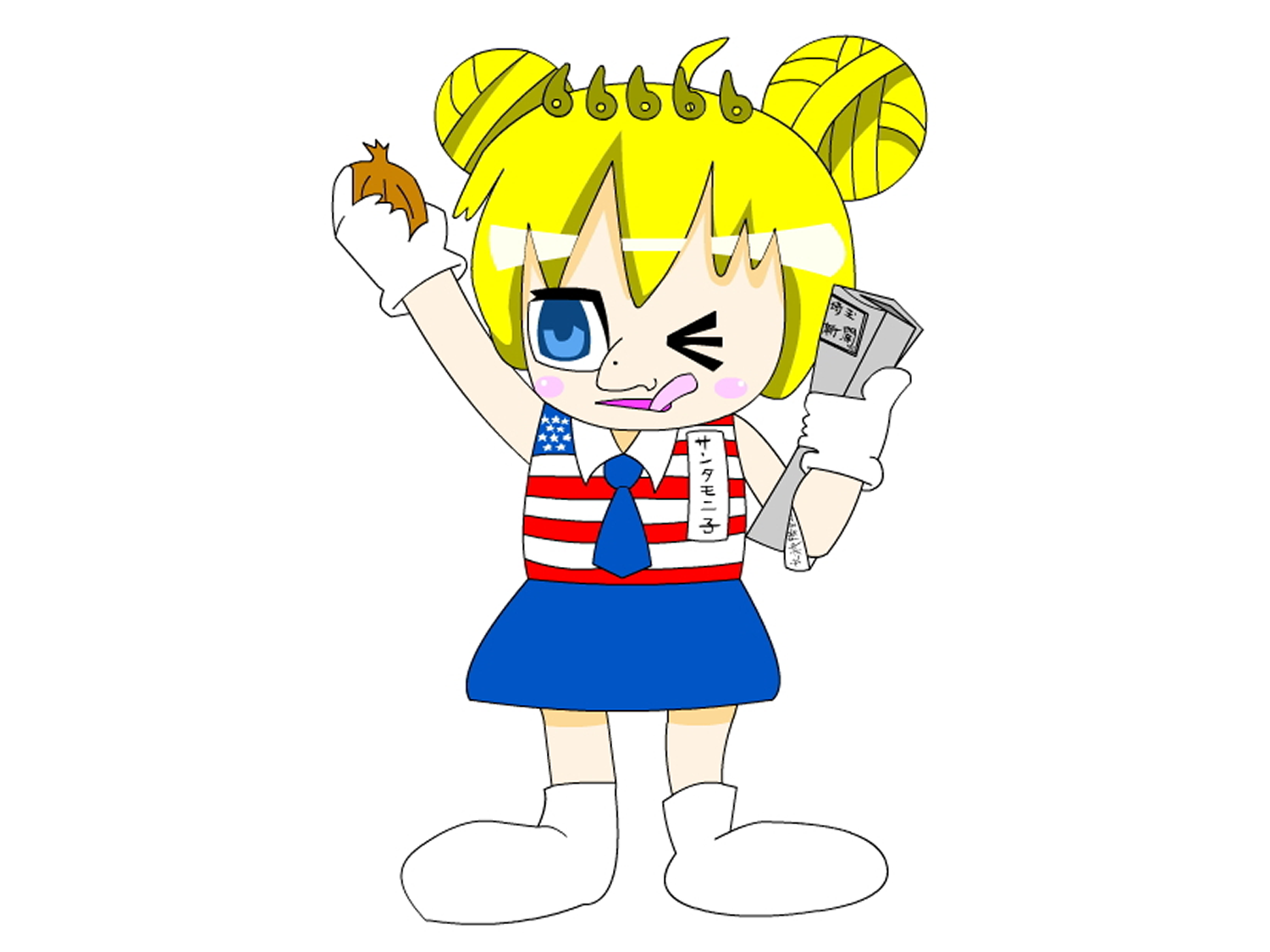 第二弾オタ就活を埼玉新聞の紙面で告知するかという話が持ち上がり、飲み会・・いや、さいたまに子会議でトイレに立った橋本氏が慌てて戻って来て「凄いアイディアが浮かんだ。次はサンタモニ子だ。」と大ヒット間違いなしと思われたが、イラストにしてみると鼻が気持ち悪いという理由で却下された。